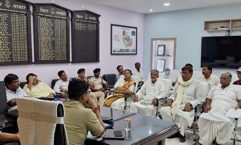 सहरसा:- जिलाधिकारी दीपेश कुमार की अध्यक्षता मान्यता प्राप्त राजनीतिक दल प्रतिनिधियों के साथ आयोजित बैठक में दिनांक 09.07.25 को आहुत राज्यस्तरीय बंदी, आंदोलन के दौरान विधि व्यवस्था के समुचित संधारण हेतु की गई तैयारियों के संबंध में अवगत कराया गया एवं इसमें सहयोग की अपेक्षा की गई।           उक्त अवसर पर उपस्थित राजनीतिक दल प्रतिनिधियों को दिनांक:09.07.25 को जिलांतर्गत सिमरी बख्तियारपुर/नवहट्टा/पतरघट एवं सतरकटैया प्रखंडों में होने वाले पंचायत उप निर्वाचन के संबंध में अवगत कराया गया,निर्वाचन प्रक्रिया किसी भी परिस्थिति में बाधित नहीं हो, अन्यथा प्राथमिकी दर्ज करने की कारवाई की जाएगी।उपस्थित राजनीतिक दल प्रतिनिधियों द्वारा पंचायत उप निर्वाचन को किसी भी परिस्थिति में बाधित नहीं करने हेतु प्रतिबद्धता व्यक्त की है।जिलाधिकारी एवं पुलिस अधीक्षक महोदय ने उक्त अवसर पर संबोधित करते हुए कहा कि आपातकालीन सेवा, रेल परिचालन बाधित नहीं हो,जाम/बंदी से आम नागरिक को किसी तरह की परेशानी नहीं इसका ध्यान रखना भी सभी की जिम्मेवारी है।      उपस्थित मान्यता प्राप्त राजनीतिक दल प्रतिनिधियों द्वारा इस संबंध में सहमति व्यक्त की गई है। बैठक में अपर समाहर्ता निशांत, अनुमंडल पदाधिकारी सदर श्रेयांश तिवारी सहित विभिन्न मान्यता प्राप्त राजनीतिक दलों के प्रतिनिधि उपस्थित थे।