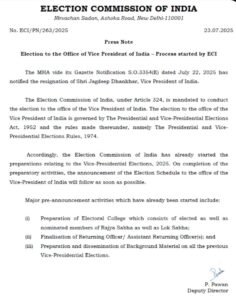 चुनाव आयोग ने शुरू की उप राष्ट्रपति चुनाव की तैयारी