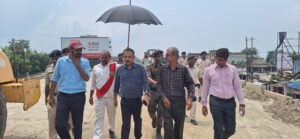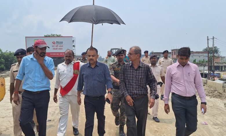 जिलाधिकारी द्वारा बैजनाथपुर में निर्माणाधीन फ्लाईओवर निरीक्षण के क्रम में संदर्भित क्षेत्र में यातायात व्यवस्था के सुचारु प्रबंधन निमित जल जमाव, अतिक्रमण की समस्या को यथाशीघ्र निष्पादित करने का निर्देश