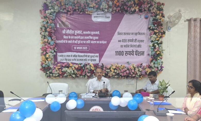 सहरसा:-पूर्व निर्धारित कार्यक्रम के अनुसार सामाजिक सुरक्षा द्वारा संचालित पेंशन योजना अंतर्गत मुख्यमंत्री द्वारा नई दर से पेंशन राशि के डीबीटी के माध्यम से अंतरण एवं उनके संदेश के लाइव प्रसारण के अवसर पर स्थानीय विकास भवन, सभी प्रखण्ड मुख्यालयों/नगर निकाय क्षेत्रों सहित जिलांतर्गत कुल 1035 स्थलों पर भव्य कार्यक्रम का आयोजन किया गया,जिसमें अनेकों लाभुक उपस्थित रहे।          जिला मुख्यालय में उक्त वर्णित कार्यक्रम का आयोजन जिलाधिकारी दीपेश कुमार की अध्यक्षता में स्थानीय विकास भवन में किया गया। उक्त अवसर पर कार्यक्रम में उपस्थित लाभुकों को जिलाधिकारी ने बढ़ी हुई पेंशन राशि के संदर्भ में शुभकामना दी एवं उनको राशि के विवेकपूर्ण व्यय हेतु प्रेरित किया।कार्यक्रम में उपस्थित बड़ी संख्या में उपस्थित लाभुकों ने बढ़ी हुई पेंशन राशि के संदर्भ में हर्ष व्यक्त करते हुए कहा की इसके फलस्वरूप उनको जीवन यापन में पूर्व की तुलना में और सहूलियत होगी,जिसके लिए वे राज्य सरकार के प्रति कृतज्ञ है।सामाजिक सुरक्षा कोषांग से प्राप्त जानकारी के अनुसार बढ़ी हुई पेंशन राशि से जिलांतर्गत लगभग 2,34000 व्यक्ति लाभान्वित होंगे।.   आयोजित कार्यक्रम के अवसर पर अपर समाहर्ता निशांत, उप निदेशक जनसंपर्क सह जिला जनसंपर्क पदाधिकारी, सहायक निदेशक(समाज कल्याण विभाग) निरूपा, डीपीओ (आईसीडीएस), सहायक निदेशक, दिव्यांगजन सशक्तिकरण कोषांग एवं सहायक निदेशक, सामाजिक सुरक्षा कोषांग उपस्थित थे।कार्यक्रम का संचालन सहायक निदेशक, सामाजिक सुरक्षा द्वारा किया गया।