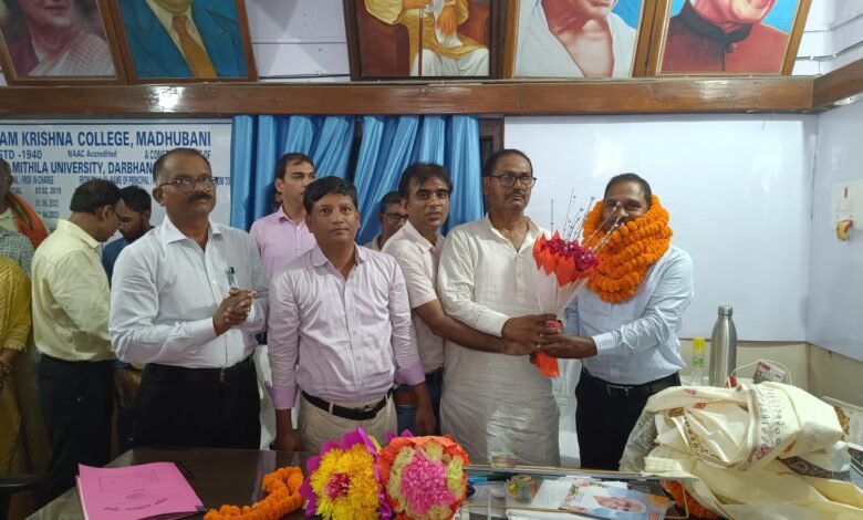 मधुबनी:- ल.ना.मि.वि. दरभंगा के अधिसूचना के आलोक में प्रो. डॉ. अनिल कुमार मंडल ने प्रधानाचार्य आर के. कॉलेज मधुबनी का प्रभार प्रो. अशोक कुमार से ग्रहण किया। प्रशासनिक दृष्टिकोण से विश्वविद्यालय प्रशासन ने पुनः प्रो. डॉ. अनिल कुमार मंडल को स्थानीय राम कृष्ण महाविद्यालय के प्रधानाचार्य के रूप में प्रतिनियुक्त किया है। ज्ञातव्य है कि प्रो. डॉ. अनिल कुमार मंडल के पूर्व कार्यकाल में महाविद्यालय में चतुर्दिक विकास हुआ था जिसका उदाहरण महाविद्यालय में संचालित बैचलर ऑफ़ बिज़नस एडमिनिस्ट्रेशन एवं बैचलर ऑफ़ कंप्यूटर एप्लीकेशन वोकेशनल रोजगारपरक कोर्स का प्रारंभ किया जाना है।           इनके प्रशानिक क्षमता के कारण ही इनका स्थानातरण विश्वविद्यालय मुख्यालय के समीप स्थित जे. एन कॉलेज, दरभंगा किया गया था। प्रभार ग्रहण किये जाने के इस कार्यक्रम में प्रो. अशोक कुमार, इग्नू के कॉर्डिनेटर डॉ. शशि भूषण कुमार, छात्र संघर्ष समिति के अध्यक्ष संतोष यादव, डॉ. मरगूब आलम, डॉ. मृणाल कुमार झा, डा. शहजाद मंजर, डॉ. विक्रम सिंह, डॉ. रविंद कुमार सिंह, डॉ. मनीष कुमार झा, डॉ. जावेद अहमद, डॉ. पल्लवी कुमारी, डॉ. रूबी कुमारी, डॉ. विजय कुमार, डॉ. सुधांशु रॉय, डॉ. विपिन यादव, डॉ. कमलेश कुमार, डॉ. सोनी कुमारी, डॉ. सोनम बाला, डॉ. अल्पना कुमारी, मो. कमालुउद्दीन, विश्वेश कुमार, छात्र-संघ के प्रतिनिधिगण एवं अन्य मौजूद थे सभी ने बधाई दी एवं विश्वविद्यालय के इस निर्णय के प्रति हर्ष व्यक्त किया।