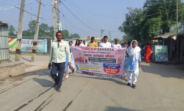सहरसा:-विधानसभा आम निर्वाचन 2025 के दृष्टिगत सोनवर्षा प्रखंड से संबंधित उच्च विद्यालय सोनवर्षा में छात्र, छात्राओं के नेतृत्व में रैली निकालकर मतदान दिवस के अवसर पर अधिकाधिक मतदाता सहभागिता की अपील की गई है।