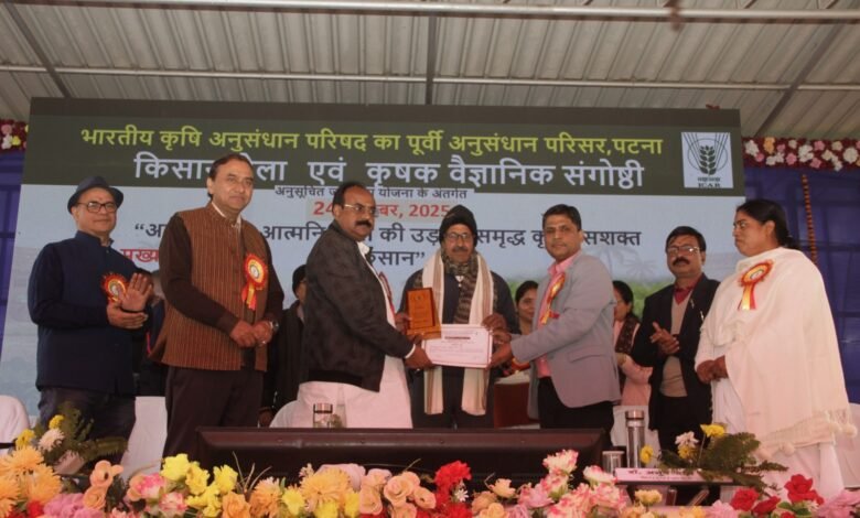 पटना:-राष्ट्रीय किसान दिवस के अवसर पर भारतीय कृषि अनुसंधान परिषद का पूर्वी अनुसंधान परिसर, पटना में अनुसंधान से आत्मनिर्भरता की उड़ान समृद्ध कृषि, सशक्त किसान” थीम पर आयोजित दो दिवसीय किसान मेला 2025 का समापन हुआ। मेले के अंतर्गत संस्थान परिसर में कृषक वैज्ञानिक संवाद, कृषि प्रदर्शनी, प्रक्षेत्र भ्रमण एवं लोक नृत्य का आयोजन किया गया।        मुख्य अतिथि दीघा विधानसभा, पटना के विधायक डॉ. संजीव चौरसिया ने कृषि प्रदर्शनियों का अवलोकन करते हुए उत्कृष्ट प्रदर्शनियों की सराहना की। साथ ही, संस्थान द्वारा विकसित की गई धान, फल एवं सब्जियों की उन्नत किस्मों एवं तकनीकों को किसानों से बढ़-चढ़कर अपनाने का आह्वान किया। उन्होंने अपने संबोधन में विकसित भारत रोज़गार गारंटी एवं आजीविका मिशन (ग्रामीण) अधिनियम, 2025 (वीबी जी राम जी अधिनियम, 2025) के महत्व पर प्रकाश डालते हुए कहा कि यह अधिनियम ग्रामीण क्षेत्रों में सुनिश्चित रोजगार, आय सुरक्षा, कौशल विकास तथा स्थानीय संसाधनों के विकास के माध्यम से समावेशी ग्रामीण विकास को सुदृढ़ करेगा।    संस्थान के निदेशक डॉ. अनुप दास ने कहा कि किसान मेले की थीम “अनुसंधान से आत्मनिर्भरता की उड़ान समृद्ध कृषि, सशक्त किसान” के अनुरूप संस्थान तथा इसके सभी केंद्र पूर्ण प्रतिबद्धता के साथ अन्नदाताओं की आजीविका सुदृढ़ीकरण, पोषण सुरक्षा सुनिश्चित करने तथा प्राकृतिक संसाधनों के संरक्षण की दिशा में निरंतर कार्य कर रहे हैं। उन्होंने इसके लिए अधिक से अधिक किसानों एवं अन्य हितधारकों को संस्थान से जुड़ने पर जोर दिया। इस अवसर पर विशिष्ट अतिथि डॉ. निर्मल सिंह दहिया, निदेशक (प्रसार शिक्षा), बिहार पशु विज्ञान विश्वविद्यालय, पटना ने संस्थान द्वारा किये जा रहे कार्यों की प्रशंसा क। उन्होंने मृदा स्वास्थ्य पर जोर देते हुए रासायनिक उर्वरकों का अनुशंसित मात्रा में उपयोग करने तथा गाय के गोबर एवं गोमूत्र का खाद के रूप में सदुपयोग करने की सलाह दी। डॉ. उज्जवल कुमार, आयोजन सचिव ने कार्यक्रम में स्वागत भाषण दिया।        साथ ही, डॉ. आशुतोष उपाध्याय, प्रमुख, भूमि एवं जल प्रबंधन प्रभाग एवं ब्रह्मकुमारी से आयीं अंजू दीदी ने भी अपने विचार किसानों के साथ साझा किये। इस दौरान, कृषक-वैज्ञानिक संवाद का आयोजन भी किया गया जिसमें किसानों को प्राकृतिक खेती, जलवायु-अनुकूल कृषि, मोटे अनाजों की खेती तथा रबी फसलों के लिए उन्नत प्रबंधन पद्धतियों के बारे में विस्तृत जानकारी दी गई। कृषक वैज्ञानिक संवाद कार्यक्रम के दौरान किसानों ने अपनी क्षेत्र-विशेष समस्याएँ वैज्ञानिकों के समक्ष रखीं, जिनका व्यावहारिक एवं वैज्ञानिक समाधान प्रस्तुत किया गया।किसानों ने संस्थान में समेकित कृषि प्रणाली, पोषण वाटिका, 