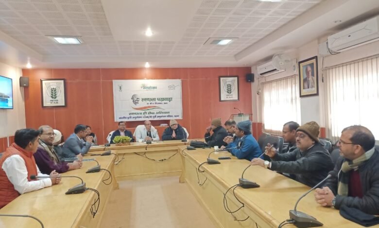 पटना:-भारतीय कृषि अनुसंधान परिषद का कृषि अनुसंधान परिसर, पटना में स्वच्छता ही सेवा अभियान के अंतर्गत 16-31 दिसंबर, 2025 तक आयोजित स्वच्छता पखवाड़ा का समापन प्रेस वार्ता एवं समीक्षा बैठक के साथ किया गया। कार्यक्रम की अध्यक्षता संस्थान के कार्यकारी निदेशक डॉ. कमल शर्मा ने की। अध्यक्षीय संबोधन में डॉ. कमल शर्मा ने कहा कि स्वच्छता ही सेवा अभियान के अंतर्गत आयोजित स्वच्छता पखवाड़ा ने संस्थान में एक सकारात्मक एवं प्रेरक वातावरण का सृजन किया है। उन्होंने स्वच्छता समिति सहित संस्थान के अधिकारियों एवं कर्मचारियों के प्रयासों की सराहना करते हुए कहा कि स्वच्छ कार्यस्थल न केवल स्वास्थ्य की दृष्टि से आवश्यक है, बल्कि गुणवत्तापूर्ण अनुसंधान के लिए भी अनिवार्य है। उन्होंने स्वच्छता को संस्थान की सीमाओं से आगे समाज तक जोड़ते हुए इसे एक सतत प्रक्रिया के रूप में अपनाने की अपील की।           साथ ही उन्होंने यह भी उल्लेख किया कि इस अवधि के कार्यक्रम संस्थान के कृषि प्रणाली का पहाड़ी एवं पठारी अनुसंधान केंद्र, राँची; कृषि विज्ञान केंद्र, रामगढ़ तथा कृषि विज्ञान केंद्र, बक्सर में भी बड़े उत्साह के साथ आयोजित किए गए। इससे पूर्व, कार्यक्रम की शुरुआत डॉ. रजनी कुमारी, अध्यक्ष, स्वच्छता अभियान द्वारा सभी अधिकारियों, कर्मचारियों एवं मीडिया प्रतिनिधियों के स्वागत के साथ हुई। उन्होंने 16 से 31 दिसंबर, 2025 के दौरान स्वच्छता ही सेवा अभियान के अंतर्गत आयोजित विभिन्न स्वच्छता संबंधी गतिविधियों की विस्तार से जानकारी दी। उन्होंने बताया कि पखवाड़े के दौरान संस्थान परिसर में व्यापक स्वच्छता अभियान, श्रमदान, स्वच्छता शपथ, कचरा प्रबंधन, प्लास्टिक मुक्त परिसर से संबंधित पहल, स्वच्छता कार्यशाला, जागरूकता कार्यक्रम, हस्ताक्षर अभियान, कार्यालयों, प्रयोगशालाओं, राष्ट्रीय किसान दिवस एवं सार्वजनिक स्थलों की सफाई जैसी अनेक गतिविधियाँ सफलतापूर्वक आयोजित की गईं। इन कार्यक्रमों का मुख्य उद्देश्य कर्मचारियों, छात्रों एवं आगंतुकों में स्वच्छता के प्रति जागरूकता बढ़ाना तथा स्वच्छ जीवनशैली को अपनाने के लिए प्रेरित करना रहा। इस अवसर पर डॉ. ए. के. चौधरी, प्रधान वैज्ञानिक, डॉ. मणिभूषण, प्रधान वैज्ञानिक तथा श्री पुष्पनायक, मुख्य प्रशासनिक अधिकारी सहित संस्थान के अधिकारीगण, कर्मचारीगण एवं मीडियाकर्मी उपस्थित रहे। कार्यक्रम के दौरान डॉ. ए. के. चौधरी, डॉ. मणिभूषण एवं श्री पुष्पनायक ने स्वच्छता के महत्व पर अपने-अपने विचार व्यक्त किए। डॉ. धीरज कुमार सिंह, नोडल अधिकारी (मीडिया) ने बताया कि संस्थान द्वारा आयोजित सभी प्रशिक्षण कार्यक्रमों, जागरूकता अभियानों तथा गाँवों में किसानों के साथ संवाद संबंधी कार्यक्रमों में स्व