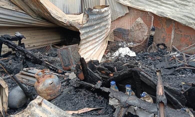 शार्ट सर्किट से आग लगने से पांच दुकान जलकर हुए राख, दमकल आने के बाद आग पर पाया गया काबू