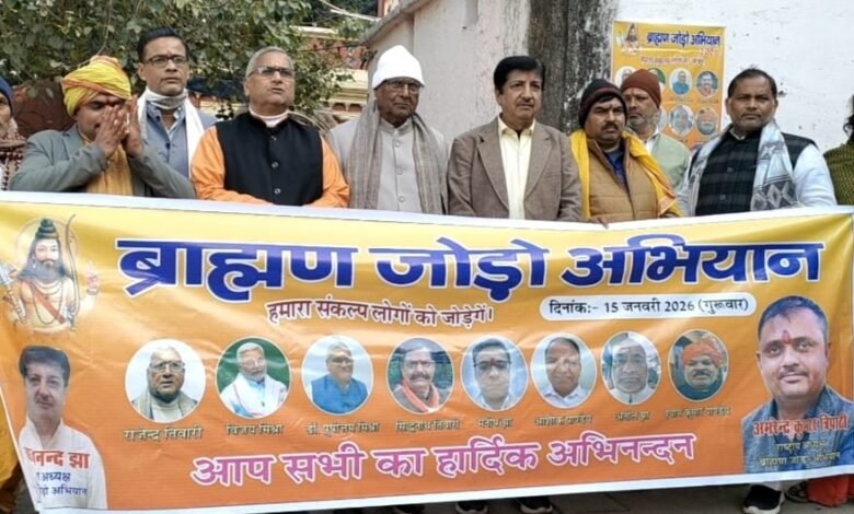 पटना:-ब्राह्मण जोड़ो अभियान के राष्ट्रीय अध्यक्ष अमरेंद्र कुमार त्रिपाठी के द्वारा 15 जनवरी 2026 से ब्राह्मण जोड़ो अभियान कार्यक्रम की विधिवत शुरुआत पटना के दरभंगा हाउस कालीघाट गंगा तट से किया गया। ब्राह्मण जोड़ो अभियान के राष्ट्रीय अध्यक्ष अमरेंद्र कुमार त्रिपाठी ने बताया कि ब्राह्मण जोड़ो अभियान ब्राह्मण समाज को एक सूत्र में बांधने का काम करेगा। ब्राह्मण समाज में मतिभिनता होने के कारण आज ब्राह्मण समाज की क्या स्थिति है? यह किसी से छुपा हुआ नहीं है। ब्राह्मण समाज कब तक बिखरा रहेगा? ब्राह्मण जोड़ो अभियान कार्यक्रम से लोग एक साथ एक मंच पर आए, यह हमें विश्वास है।           अमरेंद्र कुमार त्रिपाठी ने कहा कि निश्चित तौर पर ब्राह्मण जोड़ो अभियान पूरे भारतवर्ष के लिए एक नई दिशा देने वाला पहल है। ब्राह्मण जोड़ो अभियान की सफलता के लिए पूरे देश से लोग जुड़ रहे हैं। ब्राह्मण जोड़ो अभियान का विधिवत प्रारंभ बिहार प्रदेश अध्यक्ष बाला नंद झा अध्यक्षता में की गई। इस अवसर पर अखिल भारतीय बहुभाषीय ब्राह्मण महासंघ के प्रदेश अध्यक्ष राजेंद्र तिवारी, डॉक्टर डॉ. पुरुषोत्तम मिश्रा, मनीष झा, नवनीत दुबे, रितेश झा, भोला झा आदि ब्राह्मण नेता मौजूद थे।