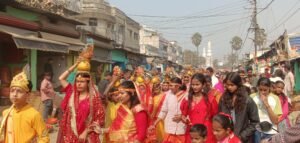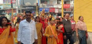 सहरसा:-अयोध्या में रामलला की प्राण प्रतिष्ठा (22 जनवरी 2024) के 2 साल पूरे होने पर मसोमात पोखर स्थित राधा कृष्ण मंदिर में भजन कीर्तन का आयोजन किया गया।           वही मसोमात पोखर से महिलाओं के द्वारा 51 कलश यात्रा निकाली गई। कलश यात्रा मसोमात पोखर से निकलकर शहर के महावीर चौक, कपड़ा पट्टी, दहलान चौक, गांधी पथ, वीर कुंवर सिंह, सराही, सुभाष चौक होते हुए पुनः मसोमात पोखर पहुचा। जहां आमजनों के बीच प्रसाद का वितरण किया गया। जुलूस में शामिल महिला, बच्चें व युवा जय श्री राम के नारे लगा रहे थे। जुलूस में शामिल कई महिलाओं ने बताया कि लंबे संघर्ष के बाद राम मंदिर का निर्माण हुआ है जिससे हमलोग काफी खुश है। ये हिंदुत्व की जीत है।       सनातन धर्म इसी तरह बढ़े और सनातनी परंपरा बरकरार रहे। यह आयोजन 22 जनवरी 2024 को हुई प्राण प्रतिष्ठा के बाद से अब तक की रामलला की भव्य यात्रा का जश्न है। राम मंदिर की प्राण प्रतिष्ठा की दूसरी वर्षगांठ केवल एक धार्मिक आयोजन नहीं, बल्कि आस्था, संस्कृति और भारतीय परंपराओं का भव्य उत्सव बन गई है।    कार्यक्रम का नेतृत्व कर रहे रणजीत स्वर्णकार ने कहा कि आज ही की शुभ तिथि पर दो वर्ष पूर्व 500 वर्षों की प्रतीक्षा समाप्त हुई और मोदी जी ने श्री राम जन्मभूमि मंदिर में रामलला की प्राण-प्रतिष्ठा की गई।           जुलूस में नेहा देवी, गुड़िया देवी, संगीता देवी, ममता देवी, पायल कुमारी, सृष्टि कुमारी, आरुषी कुमारी, मिष्ठी कुमारी, धनंजय केशव, पंकज कुमार भगत, रितेश कुमार, आदर्श कुमार, बबलू पांडेय, सोनू राय, हैप्पी सिंह, भोला पोद्दार, सागर कुमार सहित शिव शिष्य परिवार से जुड़े कई गुरु बहना व गुरु भाई मौजूद थे।