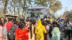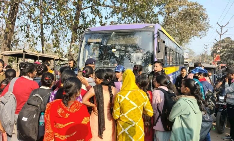 महिला कॉलेज की छात्राओं ने किया सड़क जाम, फॉर्म भरने की अनुमति देने की मांग