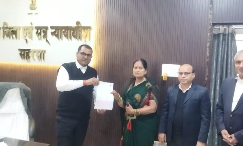 सहरसा:-मंगलवार को प्रधान जिला एवं सत्र न्यायाधीश आशुतोष कुमार झा ने मोटर दुर्घटना दावा वाद संख्या:- 23/2021 की आवेदिका गीता देवी पति संजय सिंह वर्त्तमान पता रहुआमणी थाना बनगॉंव को 12,00,000/- (बारह लाख) रूपये का चेक प्रदान किया। दिनांक 13 दिसम्बर 2025 राष्ट्रीय लोक अदालत में आवेदिका की ओर से अधिवक्ता आदित्य ठाकुर और विपक्षी शाखा प्रबंधक टाटा एआइजी जेनरल इन्श्योरेन्स कंपनी लिमिटेड की ओर अधिवक्ता से शंभु पाठक के द्वारा समझौता के आधार पर वाद निष्पादन के लिए बारह लाख रुपये देने की तय हुई।      यह वाद प्रधान जिला एवं सत्र न्यायाधीश, सहरसा के न्यायालय में दिनांक-17/11/2021 को दर्ज की गई थी जिसमें आवेदिका ने अपने स्व. पुत्र सत्यम कुमार सिंह का दुर्घटना दिनांक 07/07/2021 को पिकअप भान से कसबा पूर्णिया में हुई थी। यह उक्त वाद वर्त्तमान मे प्रधान जिला एवं सत्र न्यायाधीश के न्यायालय में चल रही थी। आवेदिका को चेक प्रदान करने के समय में जिला विधिक सेवा प्राधिकार के सचिव संजय श्रावंगी और प्राधिकार के सहायक चंंदन कुमार के साथ आवेदिका के अधिवक्ता आदित्य ठाकुर उपस्थित थे।